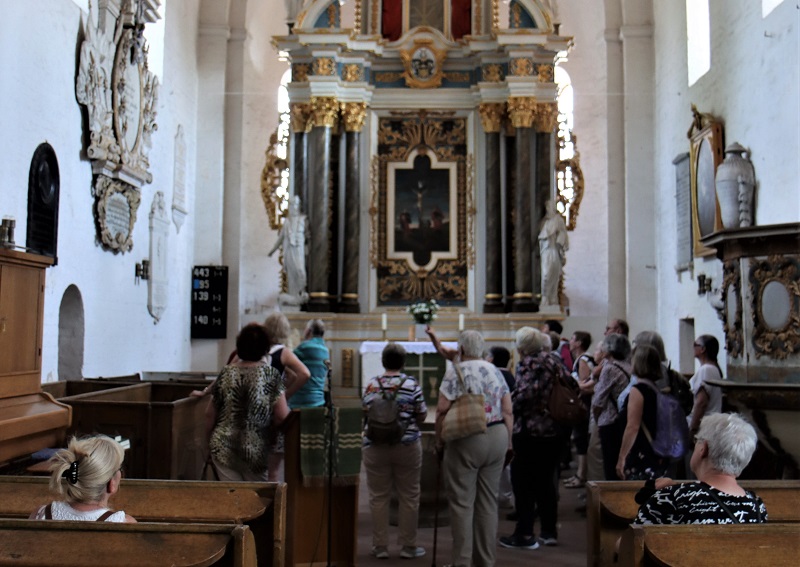 Die Busfahrt führte dann nach Schönhausen (Elbe) in Sachsen-Anhalt. Hier wurde am 01. April 1815 Otto Eduard Leopold von Bismarck, der spätere „Eiserne Kanzler“, geboren. Frau Frohbeck und Frau Schramm informierten über die Geschichte des Museums und der Kirche. Das Museum zeigt eine moderne Exposition zu Leben und Leistung des ersten deutschen Reichskanzlers. In der Kirche sind u.a. ein romanischer Taufstein, ein Triumphkreuz und einige Epitaphien zu sehen. Die 1212 geweihte dreischiffige spätromanische Backsteinbasilika gilt als der bedeutendste Nachfolgebau der Klosterkirche Jerichow. Im Barockpark befinden sich etliche Sandsteinfiguren, die Herkules-Statue und französische Bronzegeschütze, die 1872 als Geschenk Kaiser Wilhelms I. an Bismarck nach Schönhausen überführt wurden.
