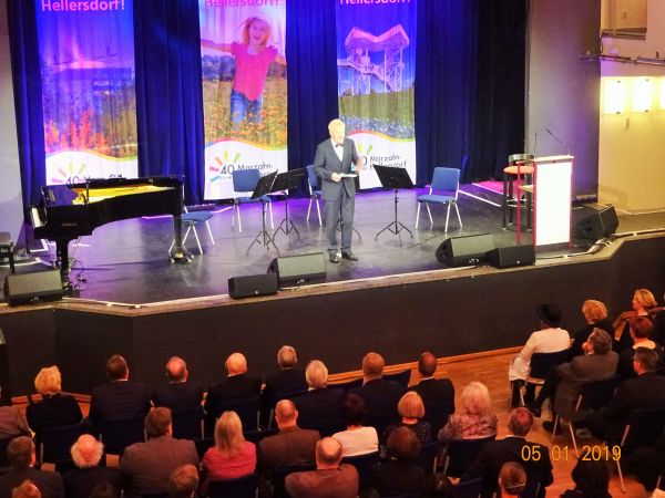 Das Bezirksamt lud am 05. Januar 2019 zum Festakt „40 Jahre Marzahn-Hellersdorf“ in das Freizeitforum Marzahn in der Marzahner Promenade. Der Schauspieler Peter Bause führte durch das Programm. Bause wohnt seit Jahrzehnten in Berlin-Biesdorf . Mitwirkende des Festprogramms waren die Pianistinnen Charlotte Ulbricht und Yoko Miura, die Sängerin Natsumi Witzmann, das Violoncelloquartett der Hans-Werner-Henze-Musikschule mit Alice Dixon, Christiane Kinast, Max Maudrich und Rüdiger Zippelius sowie Daniel Ferreira Sezinando mit Beatboxen.