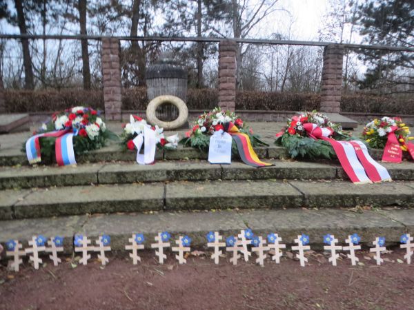 Es wurden Kränze am Gedenkstein für die Opfer des Zweiten Weltkrieges, am Mahnmal für die gefallenen Soldaten des Ersten Weltkrieges, am Denkmal zur Erinnerung an die Opfer der Zwangsarbeit 1939 - 1945 und am Sowjetischen Ehrenfriedhof niedergelegt.