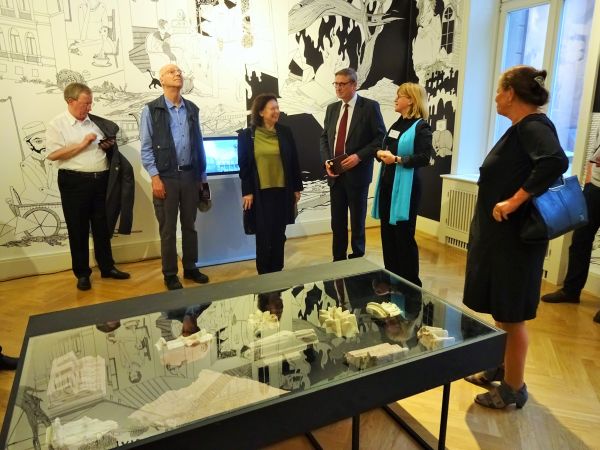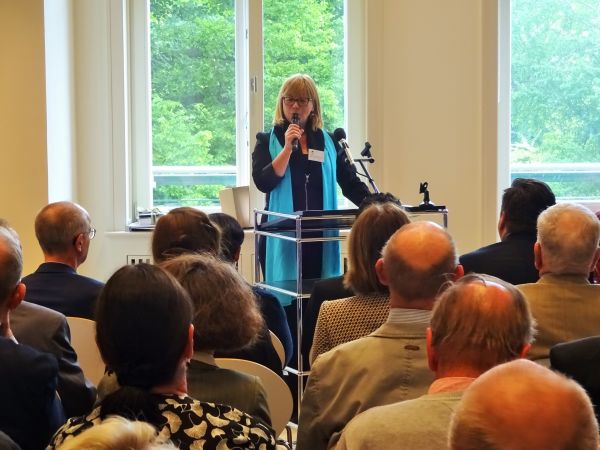 Es folgten weitere Grußworte durch Prof. Dr. Jörg Haspel, Berliner Landeskonservator und Direktor des Landesdenkmalamtes und Dipl.-Ing. Daniel Sprenger, Vizepräsident der Architektenkammer Berlin. Dr. Heinrich Niemann, Vorsitzender der Stiftung Ost-West Begegnungsstätte Schloss Biesdorf verlas das Grußwort von Prof. Gereon Sievernich, langjähriger Direktor des Martin-Gropius-Baus und äußerte auch eigene Gedanken.