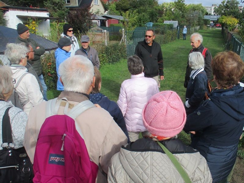 Über die Biesdorfer Promenade ging es zur Kleingartenanlage „Hafersteigkette“ des Kleingartenvereins „Gartenfreunde Biesdorf“. Der stellvertretende Vereinsvorsitzende Jörn Adam stellte die Anlage und den Verein vor. Zudem gab es eine kleine Kaffeepause.