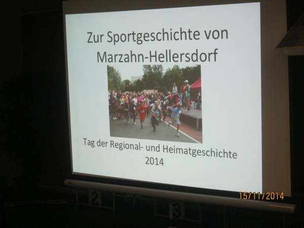 Wolfgang Brauer, Vorsitzender des Heimatvereins Marzahn-Hellersdorf konnte mehr als 40 Zuhörer und Zuhörerinnen begrüßen, unter ihnen Bürgermeister Stefan Komoß, Dr. Wolfgang Kieke, Vorsitzender des Bezirkssportbundes, Gabriele Hiller, Mitglied des Berliner Abgeordnetenhauses und weitere Mitglieder des Bezirkssportbundes .
