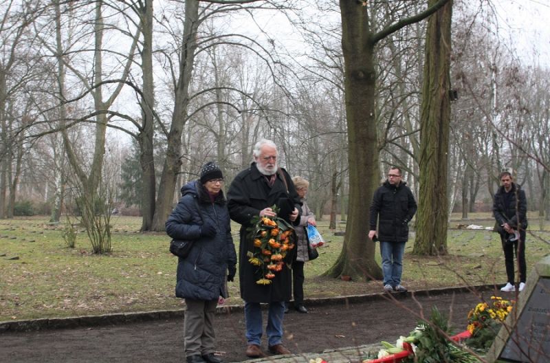 Anlässlich des Gedenktages für die Opfer des Nationalsozialismus legte der Vorstand des Heimatvereins Marzahn-Hellersdorf e.V. am 27. Januar 2021 an der Zwangsarbeiter-Gedenkstele auf dem Parkfriedhof in Marzahn ein Gebinde nieder.