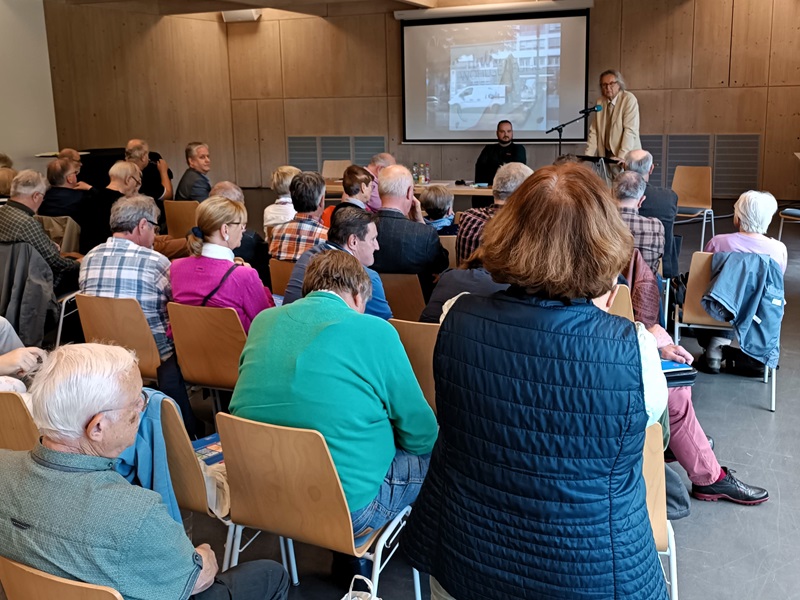 Ralf Protz gab mit seinem Beitrag „Wohnort Hellersdorf“ einen Überblick über die Entstehung der Großsiedlung Hellersdorf von den 80er Jahren des 20. Jahrhunderts bis zur Gegenwart. Dabei spielten Aspekte, wie Bauen und Wohnen zum Ende der DDR und die gravierenden Veränderungen nach 1990, wie z. B. die Mietenentwicklung bis heute, Auswirkungen der Bevölkerungsentwicklung der letzten 30 Jahre, Wohnzufriedenheit der Bewohnerinnen und Bewohner und Bauen in Plattenbauweise als internationales Phänomen, eine Rolle. In der anschließenden lebhaften Diskussion wurden Meinungen und Anfragen u.a. zu gegenwärtigen Miethöhen, Veränderungen in der Bewohnerstruktur (mehr Mieterinnen und Mieter mit Migrationshintergrund) sowie Probleme und Kritiken von „Altmietern“ mit Nachverdichtung von Innenhöfen, geäußert.