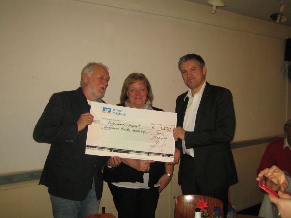 Ein beonderer Höhepunkt und große Überraschung für uns war die Übergabe eines Schecks in Höhe von 1.500,00€ durch den Leiter des FinanzCenters Kaulsdorf Herrn Gräf und die Leiterin Kundenberatung Frau Schlenker der Berliner Volksbank.