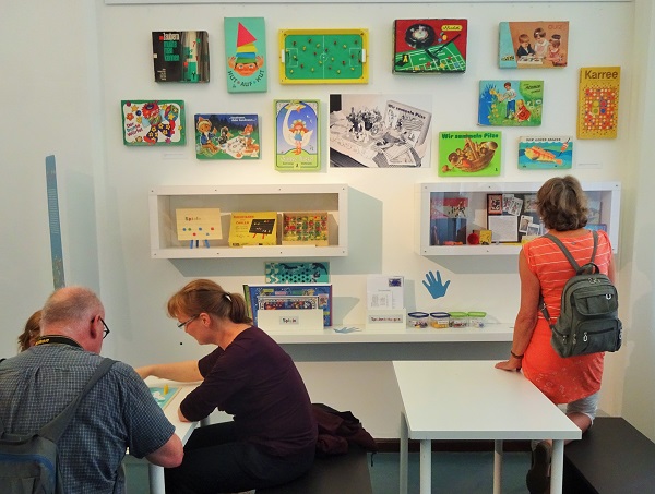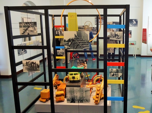 In 20 Themeninseln werden verschiedene Spielzeuge, Gesellschafts- und Lernspiele, Militärspielzeug, importiertes Spielzeug, das Spielen auf Festen, auf Spielplätzen und in Kindereinrichtungen und das Kinderfernsehen der DDR in den Mittelpunkt gerückt. Zu sehen sind Metall- und Holzautos, PEBE-Steine, SONNI-Puppen, Kinderpost, Cowboys und Indianer, Konstruktionsbaukästen von VERO, Plüschtiere, Kaufmannsladen, Puppenbühne mit Kasper & Co. und vieles mehr. Die zahlreichen Exponate sind größtenteils Leihgaben von Marzahn-Hellersdorfern Bürger*innen. Texte geben Informationen zur Spielzeuggeschichte, zu Spielwarenherstellern und Spielzeugdesignern. Auf historischen Fotos sind spielende Kinder aus unserem Bezirk zu sehen. Kinder können sich mit Brettspielen, Basteleien und originalen DDR-Kinderbüchern beschäftigen oder mit der Triola musizieren.