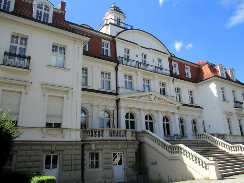 Die Busfahrt führte danach zum Schloss Genshagen. Das Schloss wurde 1878 bis 1880 auf dem Fundament eines vermutlich um 1700 erbauten Herrenhauses errichtet und von 1910 bis 1912 umgebaut und erweitert. Der 7,5 ha große Park wurde in Anlehnung an die englische Landschaftsparkgestaltung angelegt. Das Schloss wird heute betrieben durch die Stiftung Genshagen und ist ein Ort der Begegnung und des Dialogs zwischen Politik, Wirtschaft, Wissenschaft, Kultur und Medien. Durch das Schloss führte Frau Stephanie Jakowetz.