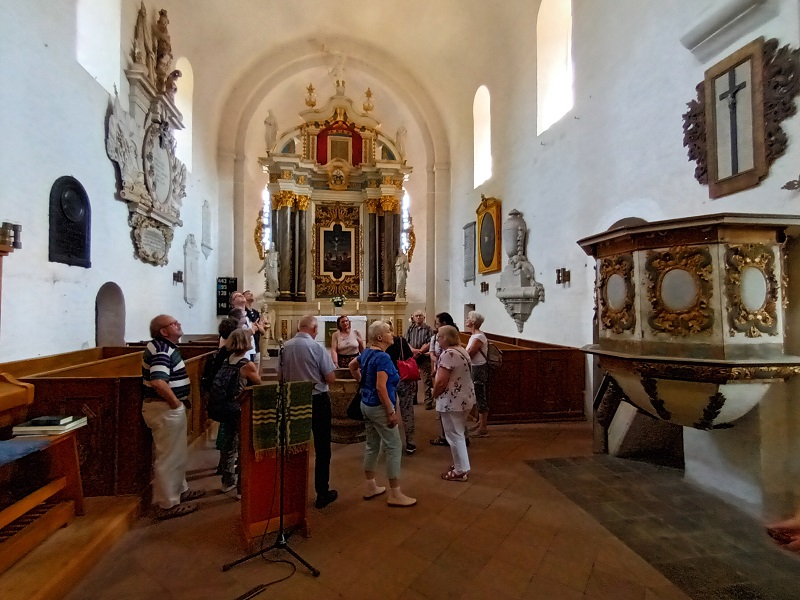 Die Busfahrt führte dann nach Schönhausen (Elbe) in Sachsen-Anhalt. Hier wurde am 01. April 1815 Otto Eduard Leopold von Bismarck, der spätere „Eiserne Kanzler“, geboren. Frau Frohbeck und Frau Schramm informierten über die Geschichte des Museums und der Kirche. Das Museum zeigt eine moderne Exposition zu Leben und Leistung des ersten deutschen Reichskanzlers. In der Kirche sind u.a. ein romanischer Taufstein, ein Triumphkreuz und einige Epitaphien zu sehen. Die 1212 geweihte dreischiffige spätromanische Backsteinbasilika gilt als der bedeutendste Nachfolgebau der Klosterkirche Jerichow. Im Barockpark befinden sich etliche Sandsteinfiguren, die Herkules-Statue und französische Bronzegeschütze, die 1872 als Geschenk Kaiser Wilhelms I. an Bismarck nach Schönhausen überführt wurden.