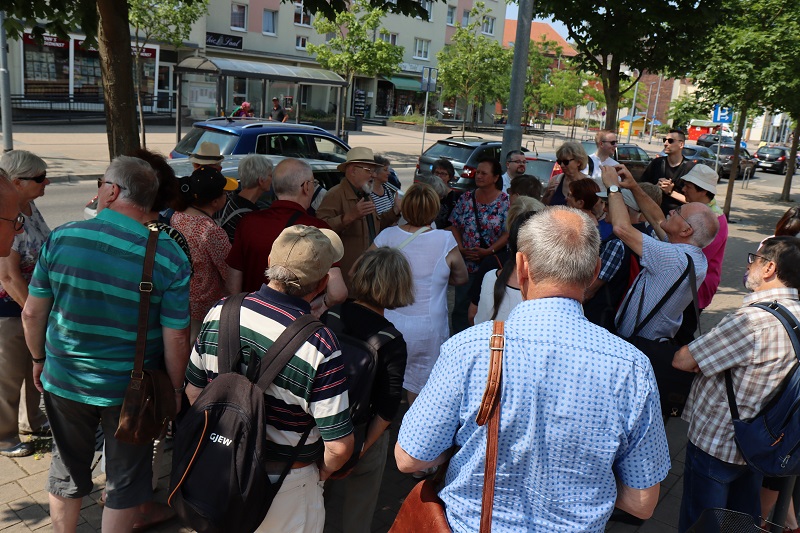 Treffpunkt und Endstation der Exkursion war der Vorplatz am S- und U-Bahnhof Wuhletal. Teilgenommen haben 44 Geschichtsinteressierte.