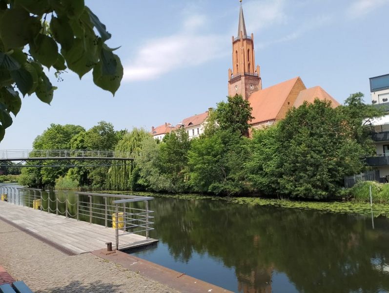 Die anschließende Stadtführung durch die Alt- und Neustadt wurde durch unser Vorstandsmitglied Albrecht Voigt vorgenommen. Er ist Rathenow besonders verbunden, da er hier von 1965 bis 1969 als Stadtrat wirkte. Die Route führte vom Kulturzentrum über August-Bebel-Platz, Kurfürstendenkmal, Stadtschleuse, Alter Stadthafen, Kirchplatz mit St.-Andreas-Kirche, Dunckerdenkmal und historischen Häusern zur Rathenower Havel. Während der Führung war viel über die Geschichte Rathenows zu erfahren.