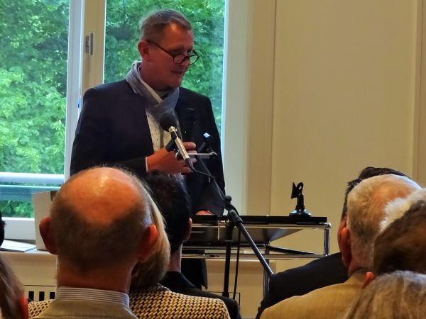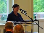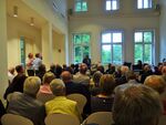 Es folgten weitere Grußworte durch Prof. Dr. Jörg Haspel, Berliner Landeskonservator und Direktor des Landesdenkmalamtes und Dipl.-Ing. Daniel Sprenger, Vizepräsident der Architektenkammer Berlin. Dr. Heinrich Niemann, Vorsitzender der Stiftung Ost-West Begegnungsstätte Schloss Biesdorf verlas das Grußwort von Prof. Gereon Sievernich, langjähriger Direktor des Martin-Gropius-Baus und äußerte auch eigene Gedanken.