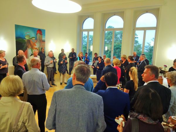 Die Gäste wurden durch Juliane Witt, Bezirksstadträtin und Karin Scheel, Künstlerische Leiterin Schloss Biesdorf begrüßt. Der Senator für Inneres und Sport Andreas Geisel hielt ein Grußwort zum Thema „Kultur & Werte in den Bezirken“. Geisel kennt das Schloss und den Schlosspark bereits aus Jugendzeiten. Einst nahm er hier an einem Wettbewerb teil und konnte mit seiner Mannschaft eine Medaille erringen. Die Bezirksbürgermeisterin Dagmar Pohle hielt die Festrede „150 Jahre Schloss Biesdorf“.