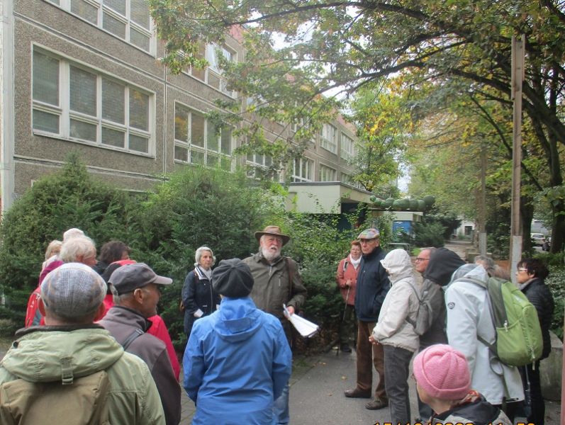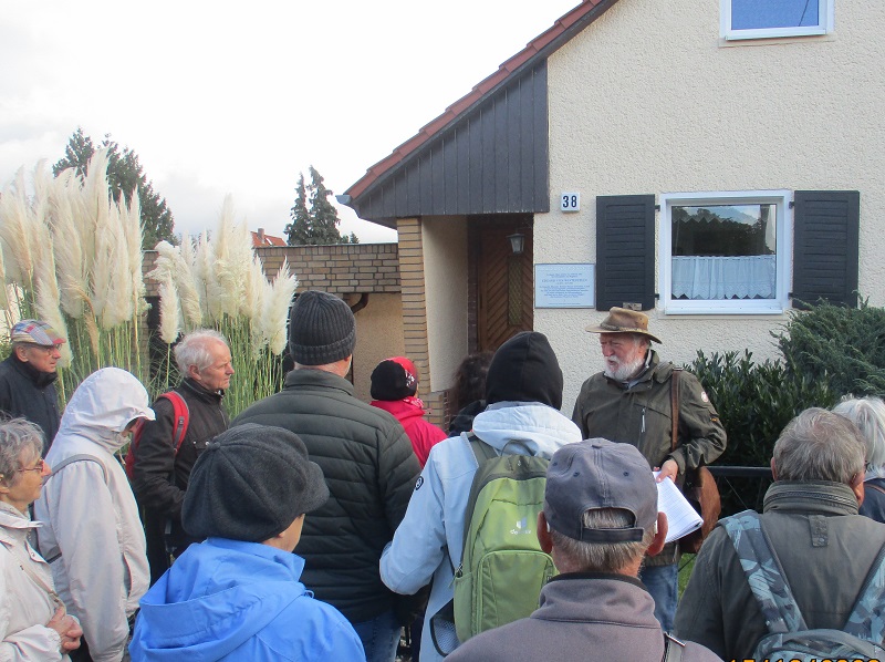 Es folgte die zweite Führung „Als Biesdorf ein kleines Wandlitz war…“ des Heimatvereins durch das Biesdorfer Getreideviertel. Wolfgang Brauer konnte erneut interessante Geschichte vermitteln. Im Mai 1945 wurden für Magistratsmitglieder, Parteifunktionäre und Kulturschaffende östlich der Oberfeldstraße Wohnungen und Häuser zur Verfügung gestellt. Insgesamt wurden 34 Wohnhäuser enteignet. Im Volksmund wurde diese Gegend schnell „Magistratssiedlung“ genannt. Der Rundgang führte an diese Wohnorte, verdeutlichte geschichtliche Zusammenhänge und rückte in Vergessenheit geratene Personen wieder in das Blickfeld.