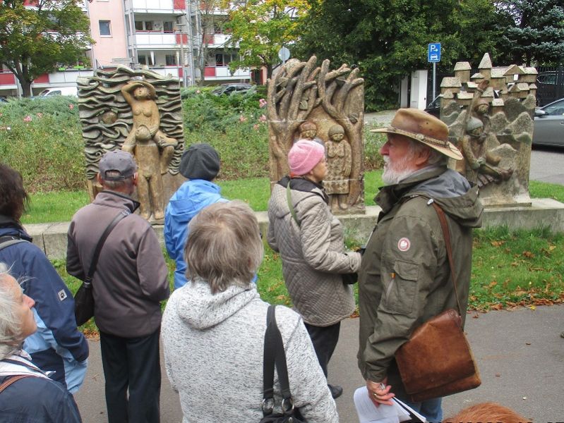 An der Richtkrone in Berlin-Springpfuhl startete die Führung „Marzahn – Auf den Spuren einer Vision“ mit Wolfgang Brauer, Vorsitzender des Heimatvereins Marzahn-Hellersdorf. Marzahn wurde zum Symbol des Wohnungsbauprogramms der DDR, mit dem diese die „Wohnungsfrage als soziale Frage“ lösen wollte. Die Führung gab einen Einblick in die Umsetzung der Vision einer sozialistischen Stadt. Herr Brauer referierte zur städtebaulichen Infrastruktur und künstlerischen Gestaltung sowie zu den Umgestaltungen in den letzten Jahrzehnten.