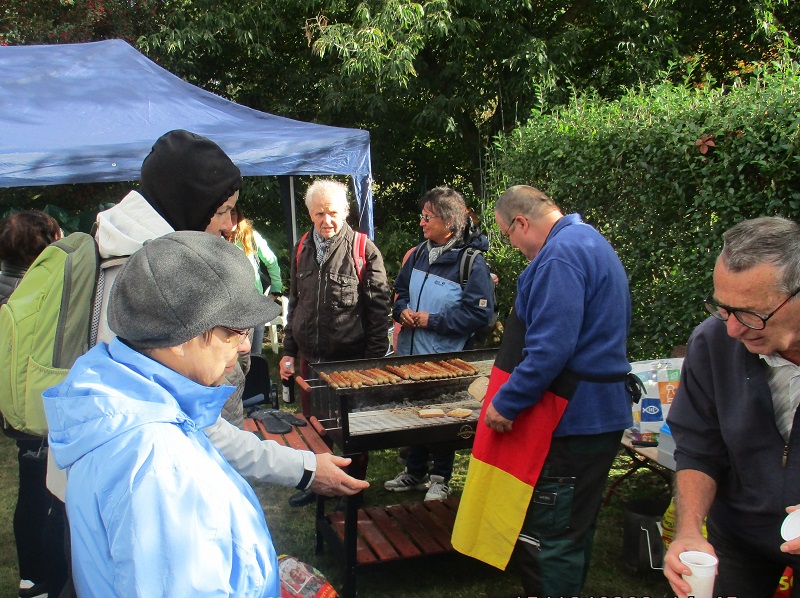 Eine kleine Teilstrecke durch das Wuhletal führte zum Endpunkt der Kleingartenwanderung, zur Kleingartenanlage „Am Forsthaus“. Der Vereinsvorsitzende Ingo Freese begrüßte die Wanderer und lud im Namen des Bezirksverbandes Berlin-Marzahn der Gartenfreunde e.V. zu einem Imbiss, bestehend aus Getränken und Bratwürsten.