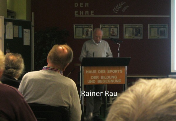 Prof. Eisentraut führte kenntnisreich und mit Humor, auch mal mit strengem Blick auf die Uhr durch die Tagung. Die folgenden Beiträge und Diskussionen spannten den Bogen von ca. 150 Jahren Geschichte des Sports in unserem Bezirk.