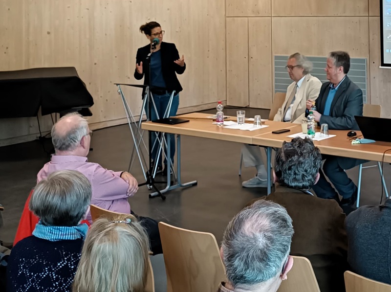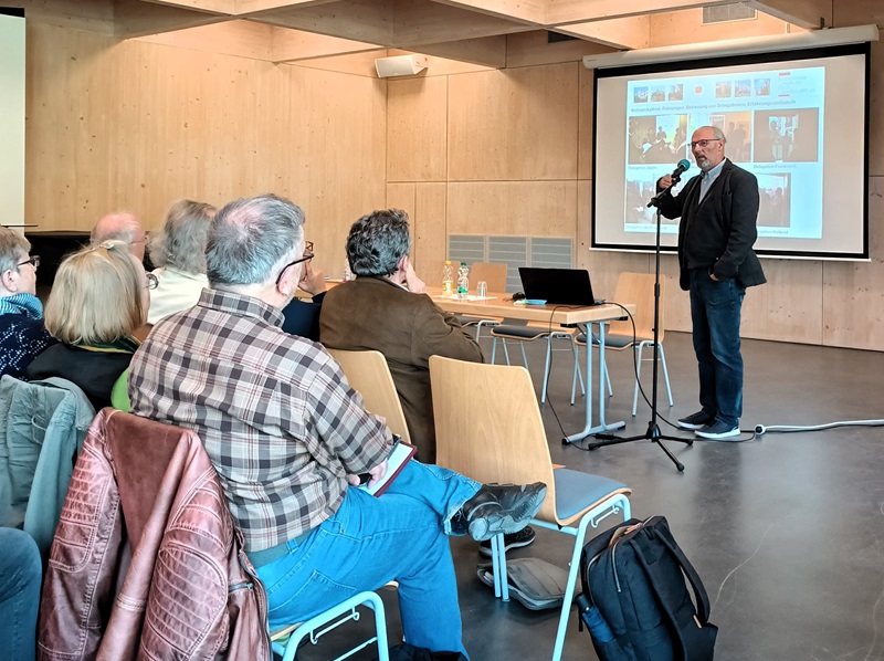 Ralf Protz gab mit seinem Beitrag „Wohnort Hellersdorf“ einen Überblick über die Entstehung der Großsiedlung Hellersdorf von den 80er Jahren des 20. Jahrhunderts bis zur Gegenwart. Dabei spielten Aspekte, wie Bauen und Wohnen zum Ende der DDR und die gravierenden Veränderungen nach 1990, wie z. B. die Mietenentwicklung bis heute, Auswirkungen der Bevölkerungsentwicklung der letzten 30 Jahre, Wohnzufriedenheit der Bewohnerinnen und Bewohner und Bauen in Plattenbauweise als internationales Phänomen, eine Rolle. In der anschließenden lebhaften Diskussion wurden Meinungen und Anfragen u.a. zu gegenwärtigen Miethöhen, Veränderungen in der Bewohnerstruktur (mehr Mieterinnen und Mieter mit Migrationshintergrund) sowie Probleme und Kritiken von „Altmietern“ mit Nachverdichtung von Innenhöfen, geäußert.